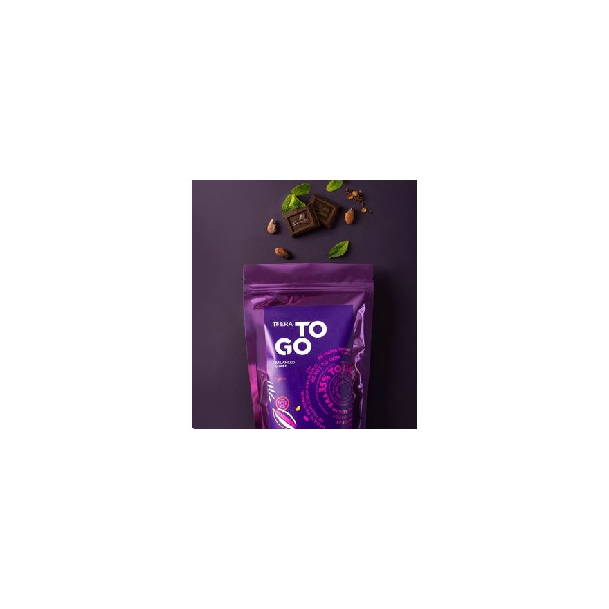 T8 ERA TO GO Choco jest mieszanką energetyczno-białkową o smaku czekoladowym na podstawie białka grochu, prebiotyku i mleka kokosowego, która zastępuje pełny posiłek białkowy i wspomaga normalizację masy ciała.