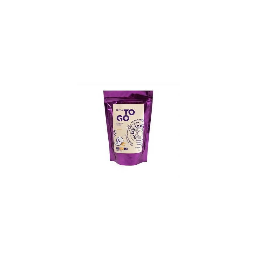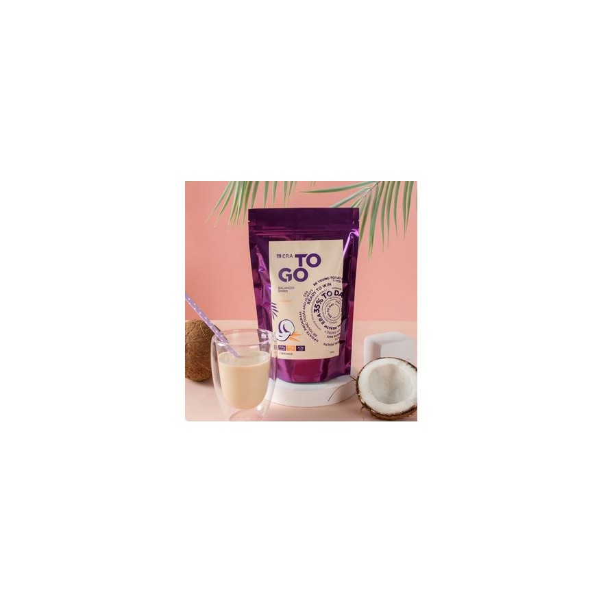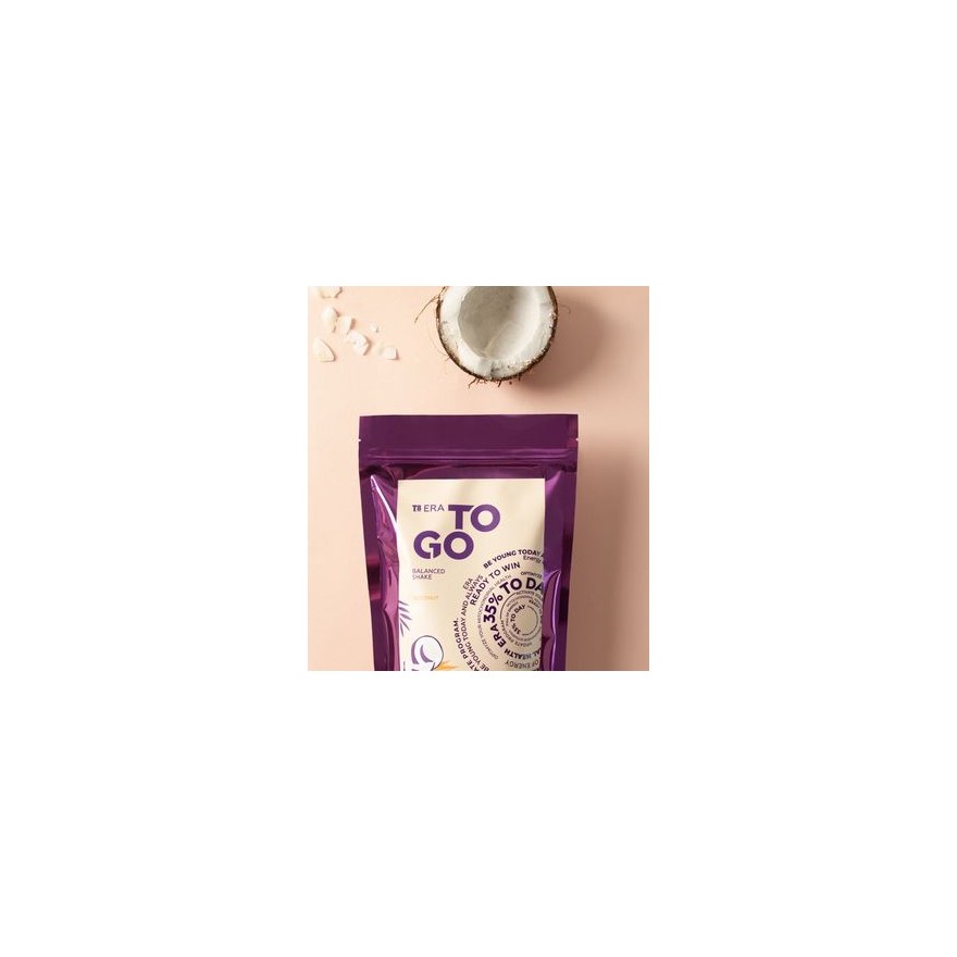 T8 ERA TO GO Coconut ** to energetyczno-białkowa mieszanka o słodkim smaku tropikalnego kokosa na bazie białka grochu, prebiotyku i mleka kokosowego, która zastępuje pełnowartościowy posiłek białkowy i pomaga w normalizacji masy ciała.