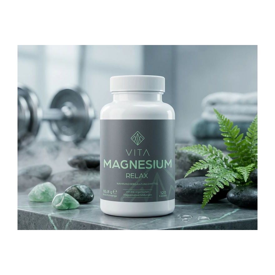 VITA MAGNESIUM RELAX łączy trzy organiczne formy magnezu w zbilansowanej formule, wspierającej świadomą suplementację codziennej diety.